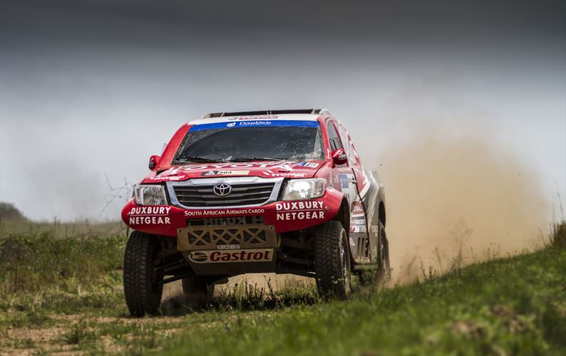In a race with more plot twists and heart-stopping moments than an afternoon soap opera, defending champions Anthony Taylor and Dennis Murphy added the 2014 Donaldson Cross Country Championship title to Castrol Team Toyota’s tally for the year. The pair finished fifth overall – high enough to bag the title – in the Atlas Copco Gold 450 after a disappointing qualifying round that saw them start the race from the back of the field.