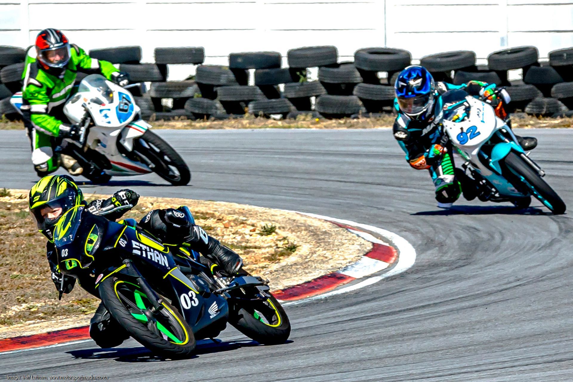 Dylan Grobler was a busy lad in the Junior Motorcycle races as he beat Ethan Diener in all three Honda NSF100 races. Behind them encouraging AMSC Development duo Anikilitha Nombana and Thandolwethu Mphuthi entertained, as they diced the day away. Grobler then left Jessica Vermaak and Ethan Diener to play in the Honda CBR 150 races as William Kew and Michele Konig followed.