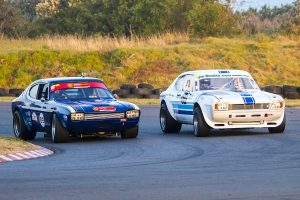 Moving on to the Pre-81 Historic Saloon Cars, Zwartkops’ Passion for Speed races have drawn just as spectacular an entry topped by a few special appearances and including the regular HRSA mob commencing their fresh championship year. A V8-rich added attraction comes in the form of Willie Hepburn and East London racer Darren Gudmanz’s 1972 Ford Capri Peranas, more EP visitors in Rudolf de Vos and Derek Boy’s ’73 ‘Little Chev’ Can-Ams, Nick Sheward’s ’84 Ford Sierra XR8, Miguel Ribeiro’s ’71 Alfa Romeo GTAM, PE visitor Christopher Radloff (’74 Toyota Corona) and Grant McCleery back at the wheel of an Opel Superboss.