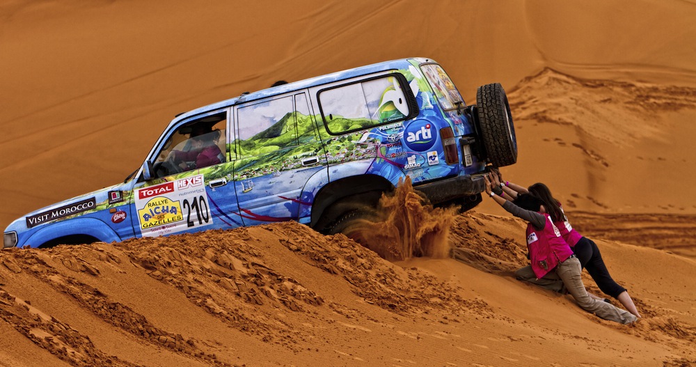 When teams get into mechanical trouble, flat a tire, or find themselves stuck in the sand or lost, they are permitted to ask for help from other competitors but are assessed penalty points for seeking help from locals, members of the media or race organizers. “Only Gazelles may help Gazelles,” Serra said. And they do. She calls this openness and generosity “the Gazelle spirit.” It was a term I would hear and an act I would experience over and over throughout the rally.