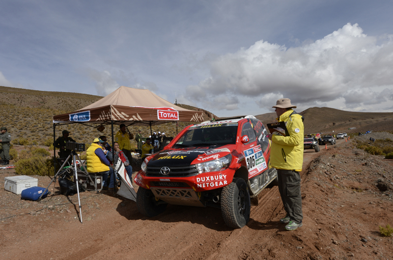 It was another high altitude stage on Dakar 2016, as the crews tackled the 542 km Stage 6. For Toyota Gazoo Racing SA, the extreme altitudes of Bolivia’s high planes made it challenging to compete with the turbo-charged cars in the field. Even so Yazeed al Rajhi and navigator Timo Gottschalk (#305) proved that the Toyota Hilux can certainly compete at any altitude.