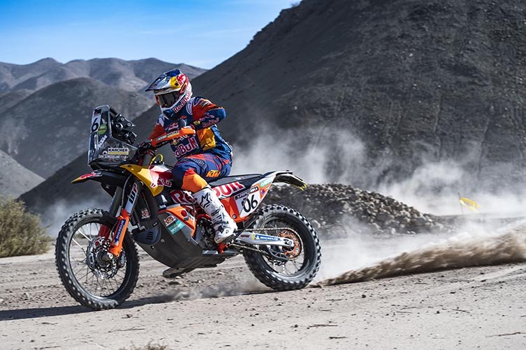 Toby Price: “It wasn’t the greatest day for me today and the results don’t really reflect our performance. Things were going really well this morning but right before the fuel stop the road book didn’t really include all the information we needed and the road that was meant to be there had been washed away. I spent a lot of time trying to figure that out and by the time I had found the way the other guys had all caught up. Overall, I’m really pleased with how I’m riding – I feel good and we have a nice set-up ahead of Dakar. Joe my mechanic has been doing some really good work on the bike so I’m happy.”
