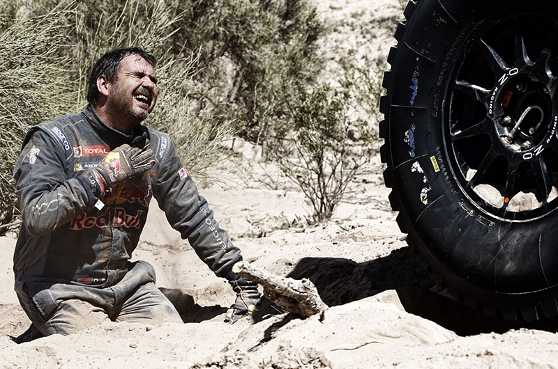 The Peugeots are now most certainly under pressure on this second week of the Dakar. Today’s stage again demonstrated this fact, even if it was a Peugeot that was victorious on this shortened stage! At the first Way Point (after 56 km), Cyril Despres, in fifth, found himself behind 4 Minis and one Toyota. Let’s just say that at this point the heat was on for the DKR 2008 drivers. At CP1 (after 82 km) the situation worsened with Despres 1 minute behind as well as Loeb and Peterhansel further back. Nasser Al Attiyah surely could not have dreamt of a better outcome.